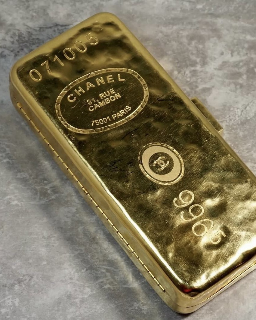 В словаре напротив словосочетания "тяжелая роскошь" должна быть фотография этого клатча. Он выглядит как золотой слиток с логотипом Chanel. Но только выглядит, ведь сделан клатч из позолоченного металла. Из золотого в ней только цвет и стоимость: за такую редкость придется отдать очень много денег при условии, что ее вообще получится найти.