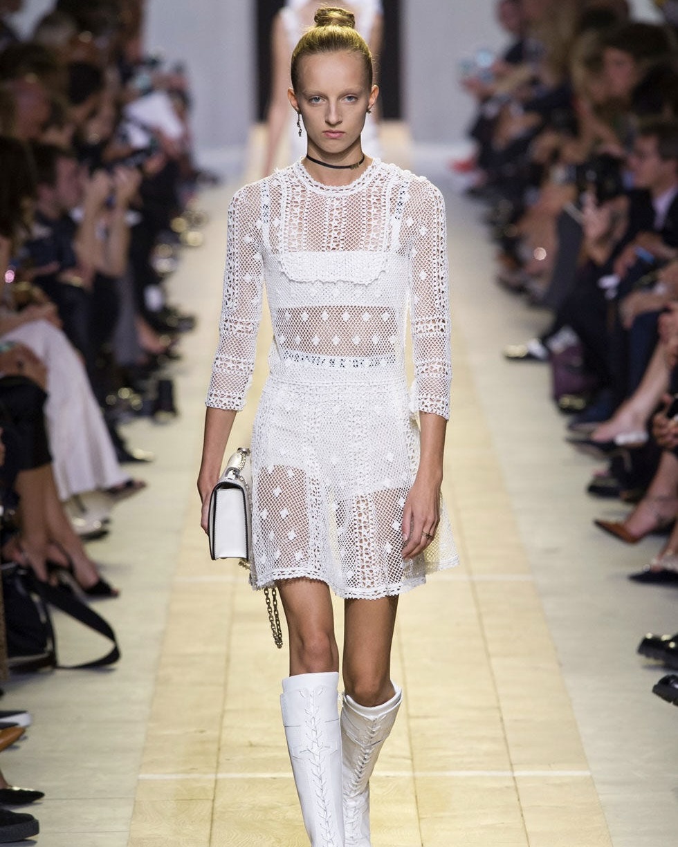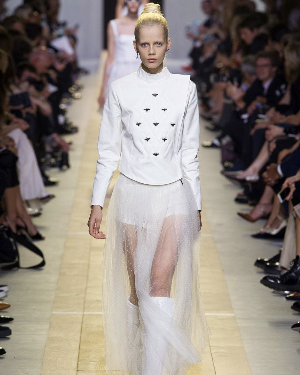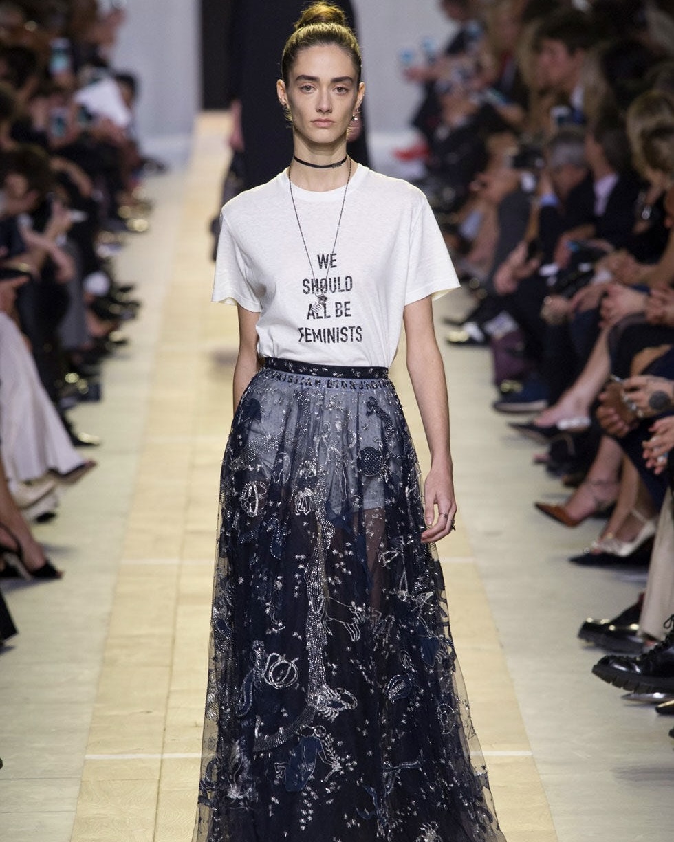 2016 стал важным годом для еще двух культовых современных дизайнеров. Мария Грация Кьюрри ушла из Valentino, где она делила пост креативного директора с Пьерпаоло Пиччоли. В сентябре 2016 случился ее дебют в Dior. Она показала, что современная женщина может выглядеть стильно, женственно, но сильно и авторитарно. В коллекции было много прозрачных тканей, кружева, вышивки, но в более носибельном около-офиссном формате. Футболки с надписью "мы все должны быть феминистками" попали, как говорится, в нерв общества и надолго закрепили этот вайб за брендом.