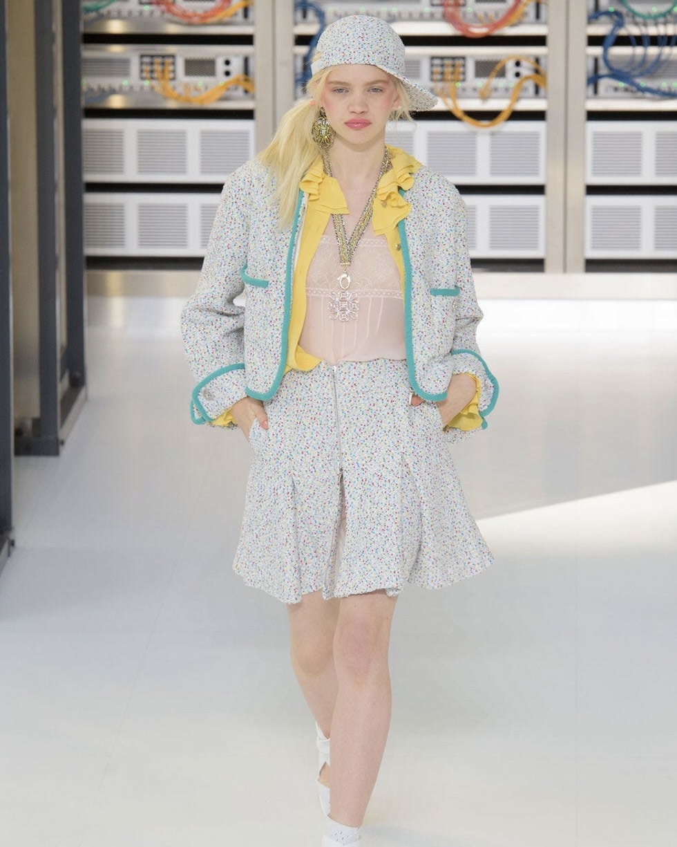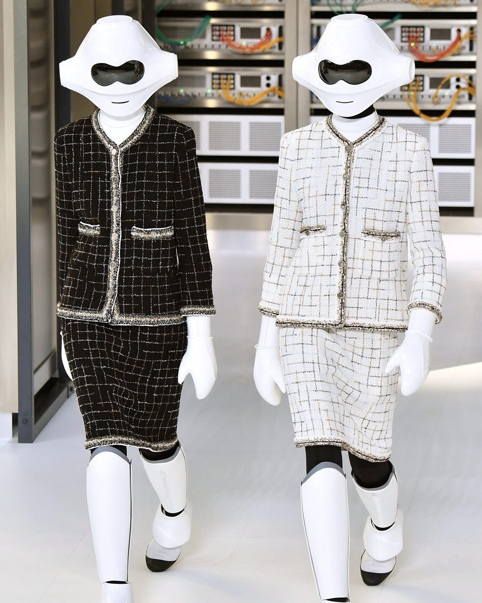 Не нуждающийся в представлении Карл Лагерфельд продолжал творить для Chanel и по-прежнему устраивал свои безумно зрелищные показы. К примеру осенью 2016 он показал коллекцию, посвященную технологиям в нашей повседневной жизни. Модели дефилировали в костюмах роботов-пришельцев из космоса...но в юбках.