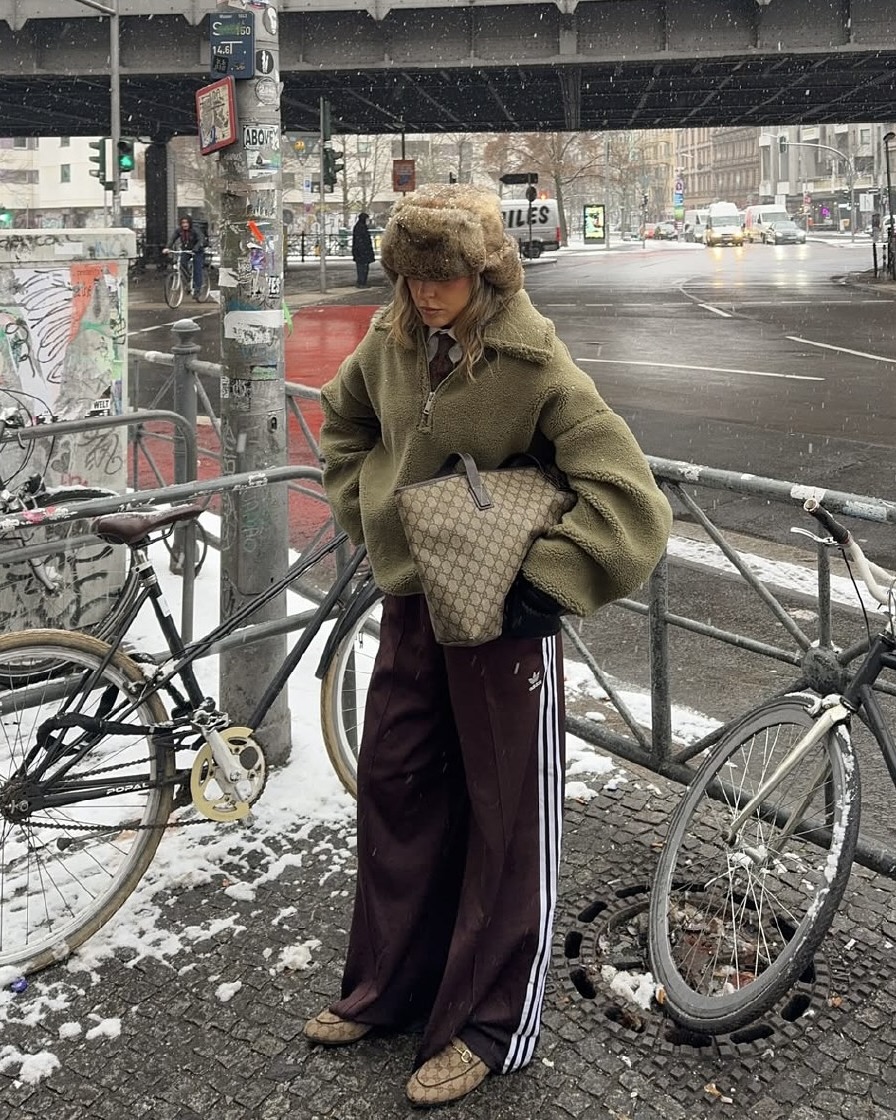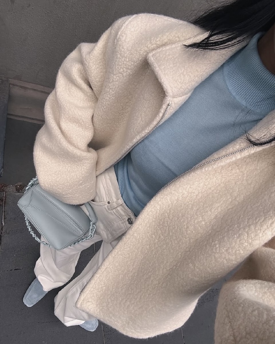 Пушистые головные уборы - еще один свежий микро-тренд. Не те, что наши родители носили в 90-х, а их более современные стильные версии. Особенно эстетично такие шапочки смотрятся в комбо с однотонными пушистыми пальто / куртками.
