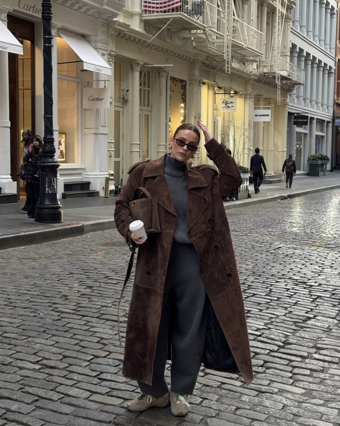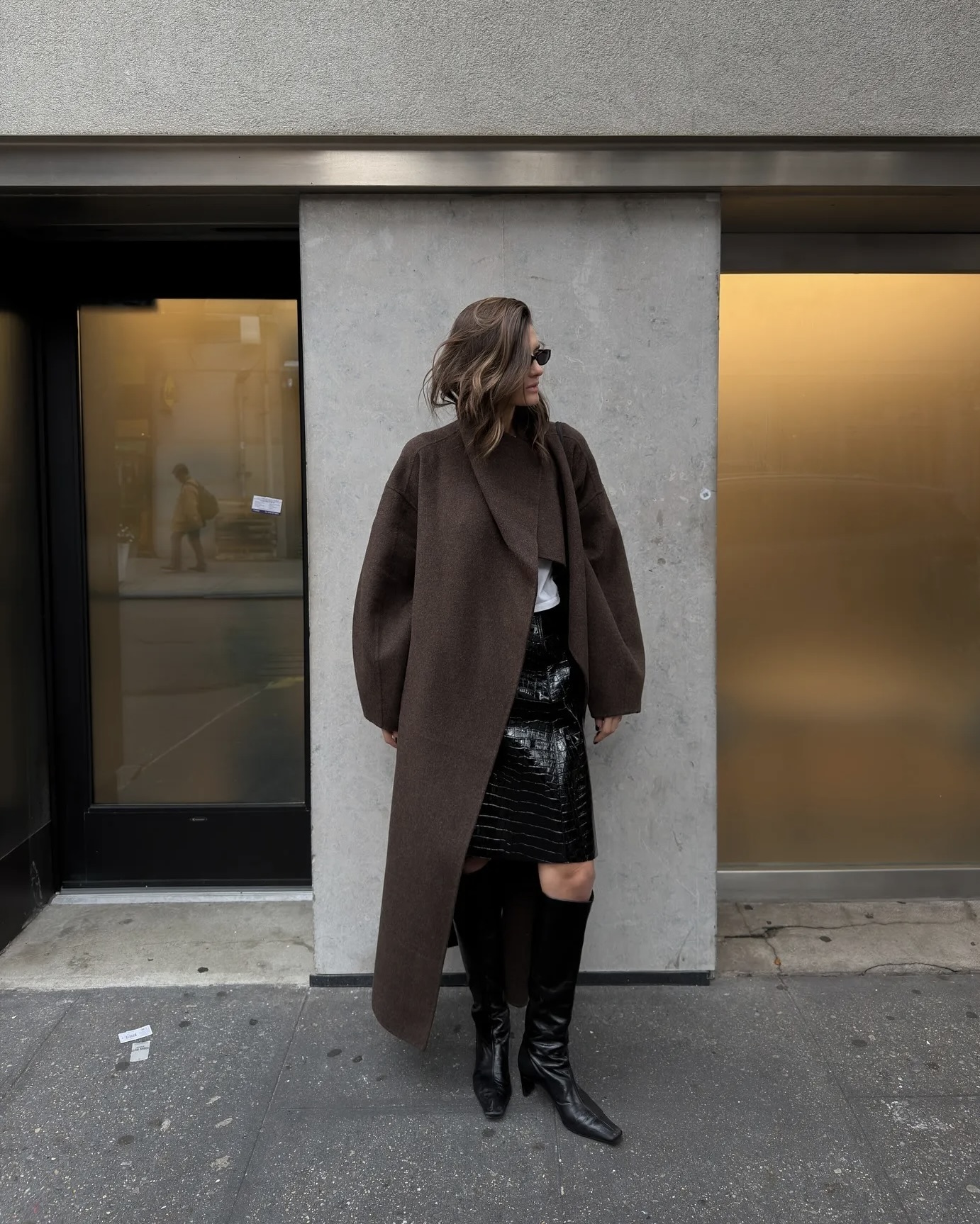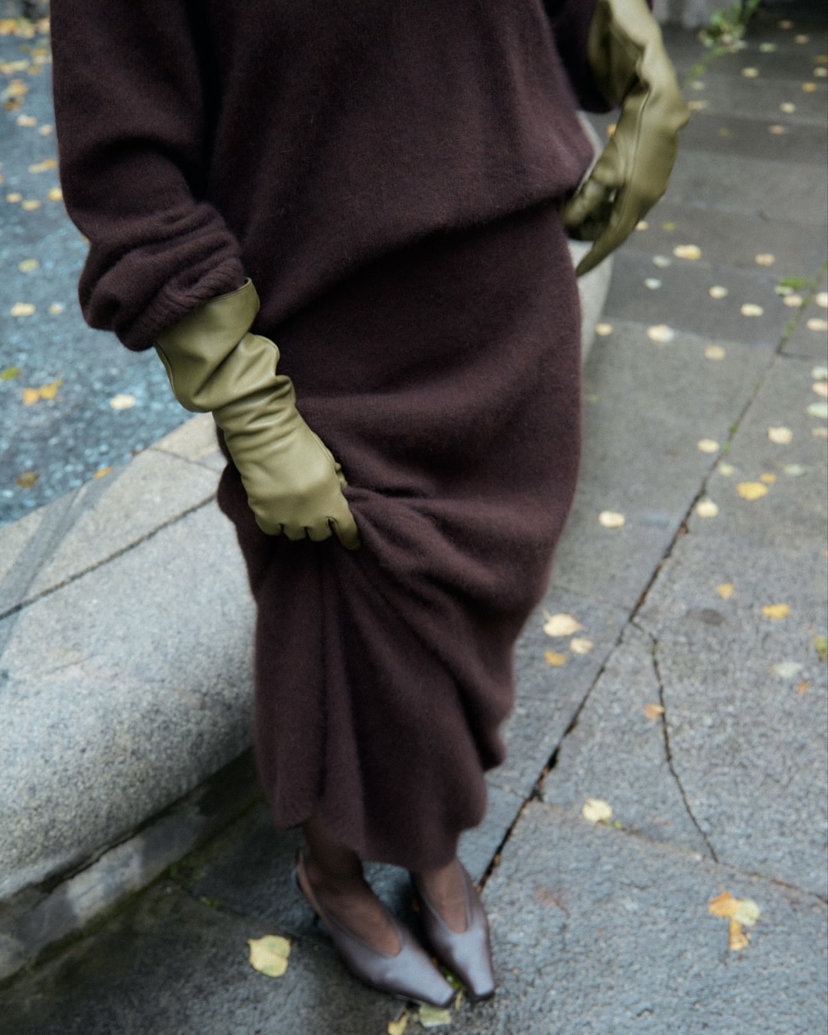 Еще один микро-тренд, который вернулся зимой 2026 - кожаные перчатки. Во-первых никому не нужны сухие потрескавшиеся руки. Во-вторых они отлично сочетаются с трендами верхней одежды. В-третьих даже такой маленький акцент из хорошей кожи добавляет пару баллов дороговизны любому зимнему образу. Вообще главным трендом обуви у западных инфлюенсеров все еще являются лоферы. Но огромные сугробы и лень коммунальных служб в России не разрешают носить такую обувь - поэтому сапоги. Здесь без перемен с осени - в тренде кожаные и замшевые сапоги до колена. А чтобы добавить им нотку роскоши - выбирайте сапоги в экзотической текстуре врое кожи змеи, крокодила и пр.