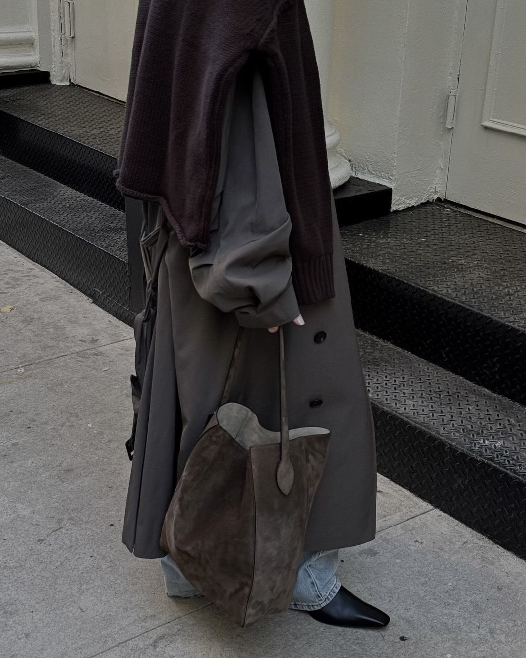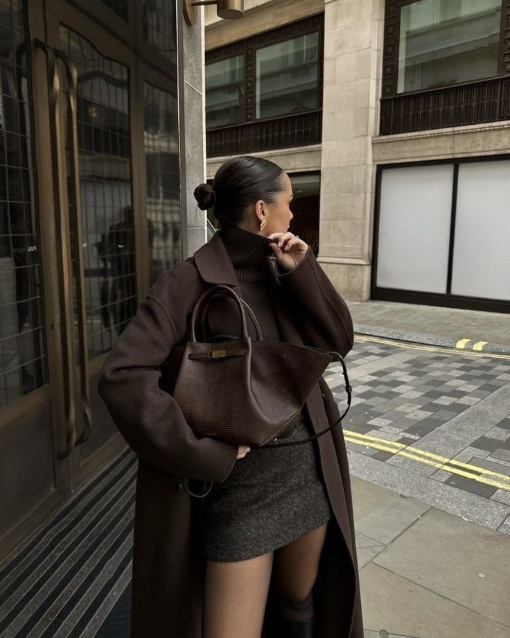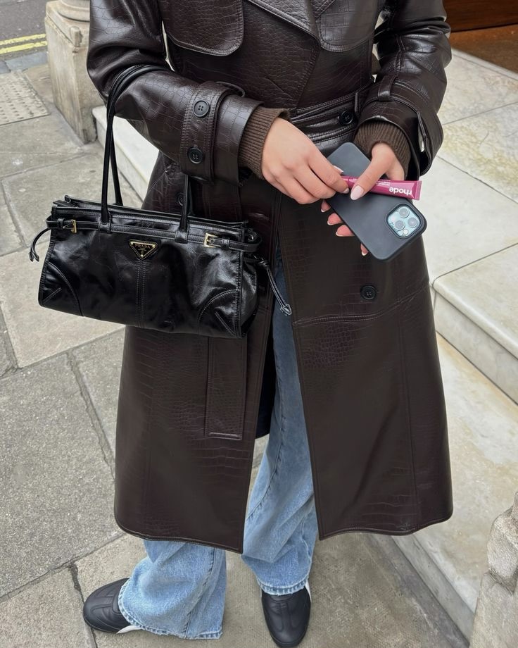 Также в модные тренды зимы 2026 вернулись сумки с верхней ручкой. Это можно было предсказать по засилию таких дизайнов на прошлой недели моды в Париже, а теперь уже и на улицах модных столиц.